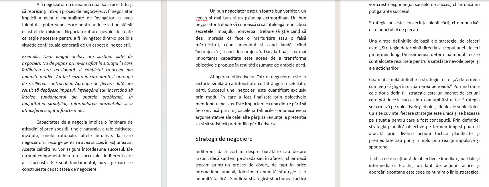 - Studii de caz: Exemple concrete și analize detaliate ale unor negocieri reale, pentru a înțelege cum se aplică teoria în practică.